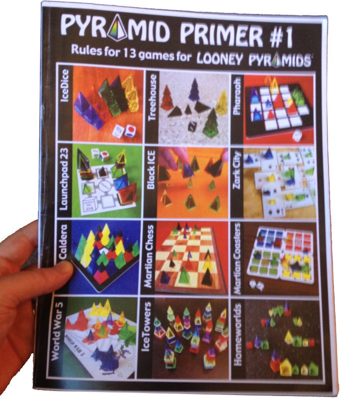 This 32 page book/magazine contains the rules to all 13 of the games promoted in the Pocket Guide to Looney Tunes Pyramids which is included in both the Ice Dice and Treehouse Game Bags as well as the Pyramids Expansion Boxes. Two copies of this primer's rules are included in the demo kit..