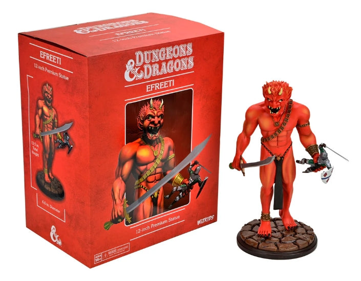 12" resin statue faithfully recreates the Efreeti featured on the cover of the 1st Edition Dungeon Master's Guide but advances the scene to place the sword-wielding knight in the Efreeti's clutches.
