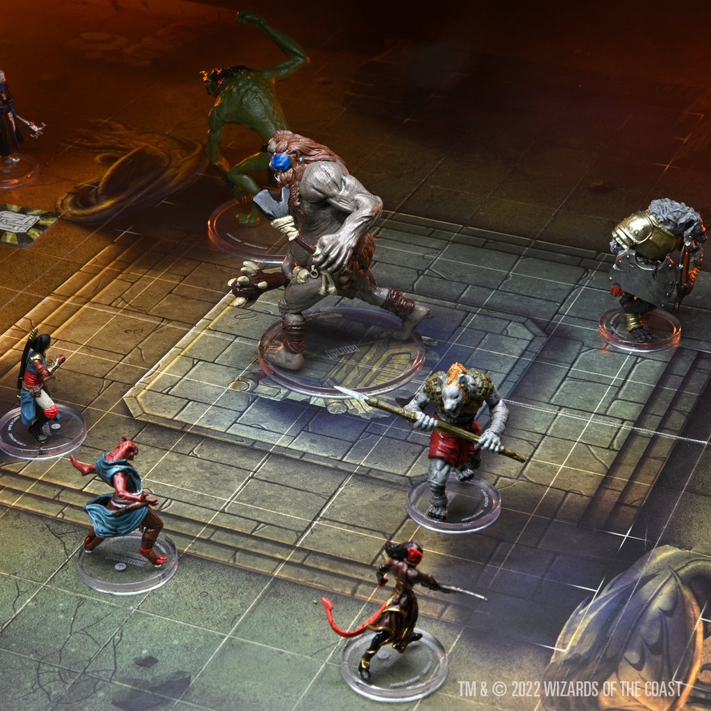Dungeons & Dragons Onslaught is a competitive skirmish game in which each player controls an adventuring party from one of the powerful factions of the Forgotten Realms. Parties delve into dungeons, battle rival adventurers, and confront fearsome monsters on a quest for treasure and glory!