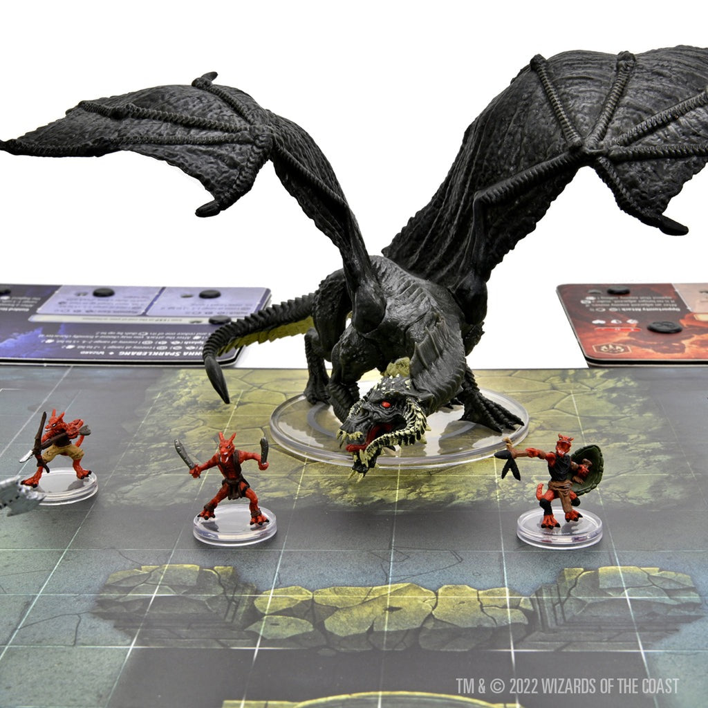This core set includes everything two players need to play, including twelve characters from two different factions (Harpers and Zhentarim), a horde of monsters, and an immersive campaign that sends rival parties deep into the depths of a ruined keep to confront a mighty black dragon.