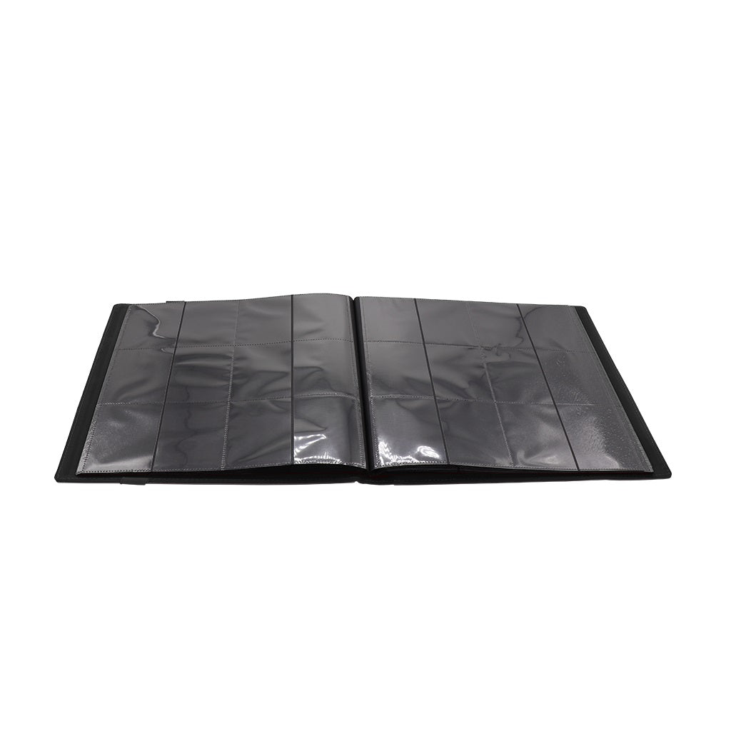 The Dex Binder Noir 12 provides the ultimate in style and protection for your treasured collection. They comfortably hold 480 double or single sleeved cards in side-loading pockets and utilize an additional flyleaf before the first and after the last page to provide additional protection. The exterior is constructed with the same Saffiano exterior as our Creation Line Deck Boxes with added padding for an extra luxurious feel. We use a black velvet lining for that extra smooth touch. We’ve done away with flimsy straps and use a triple reinforced band that keeps a tight closure to keep your cards safe!